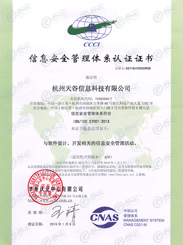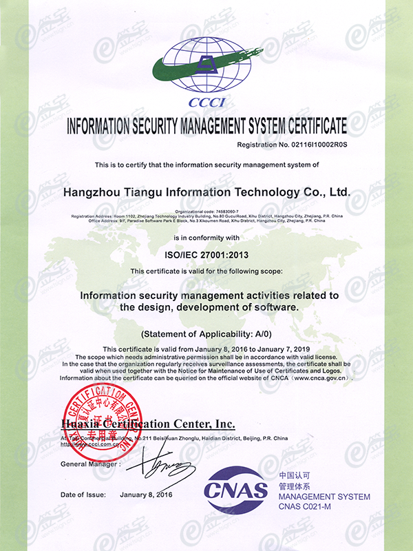 ISO/IEC 27001:2013是目前国际上得到公认的先进的信息安全解决方案,通过认证能保证和证明组织所有的部门对信息安全的承诺。